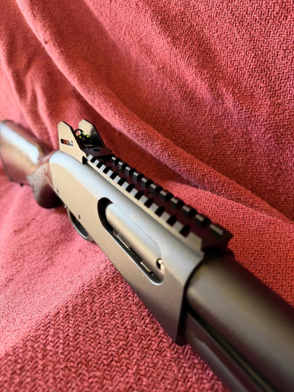 I wanted a better set of sights for my Remington 870. Mine is a 12 gauge with an 18.5” barrel that had only a simple bead sight. But without a raised rib, sighting on that bead was hard. I got this Spitfire Armory set that raised my sight picture up a little. All the components are well machined and assembled. On the gun everything fits very snug and secure.